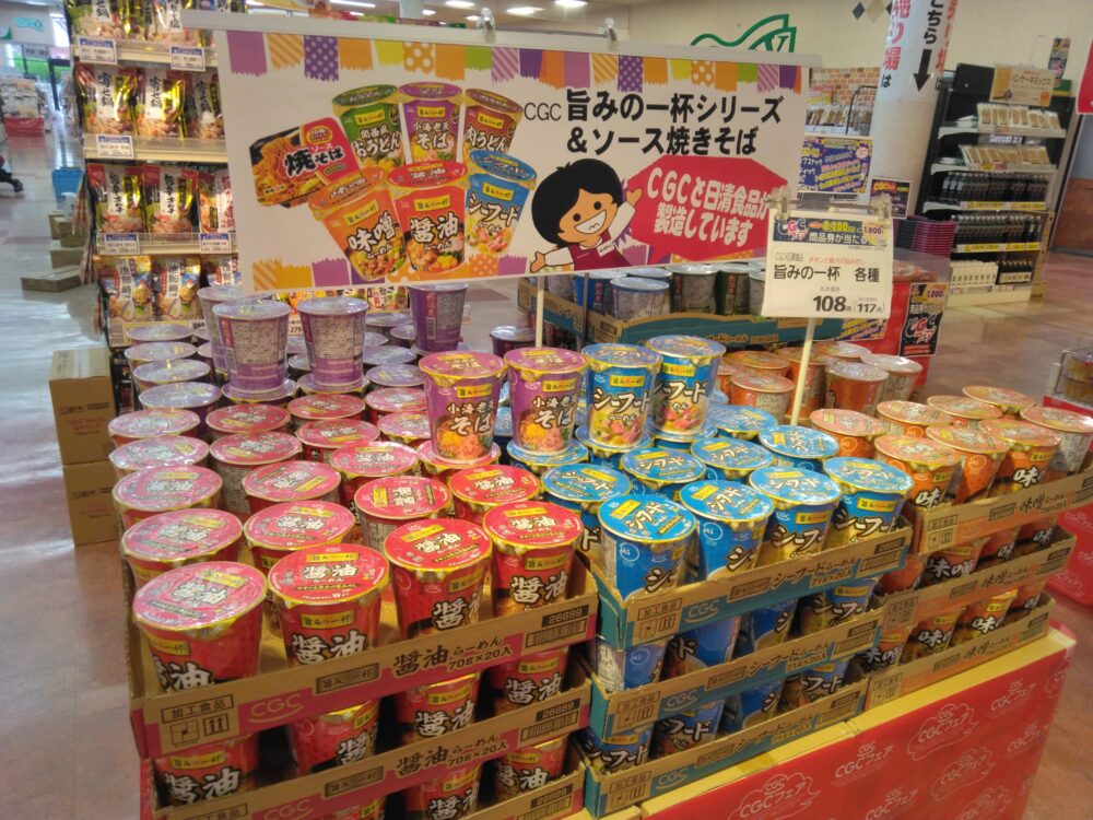 こんにちは、楽山店です。今月CGCフェアのおすすめ商品からカップ麺をご紹介!お手頃価格なのに製造は日清食品。カップ麺6種類・ソース焼きそばと合わせて7種類!きっとお好みのカップ麺が見つかるはず、是非お買い求め下さいませ!