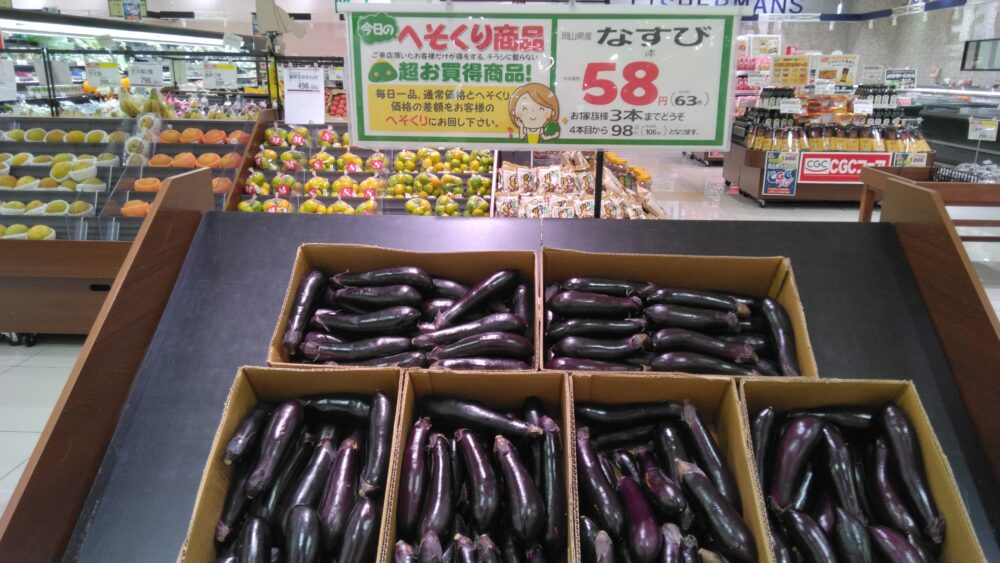 東川津店、本日のへそくりはなすびです! なすの野菜炒めがおすすめ♪ この機会に是非お買い求めくださいませ!