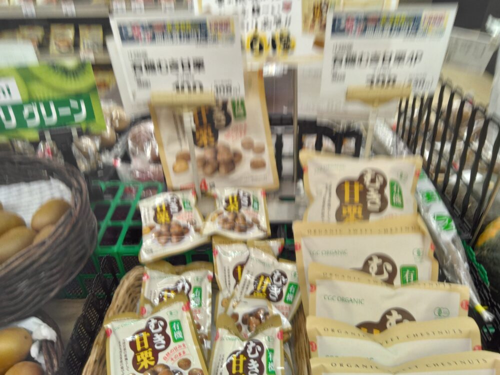 本日のおすすめは、中国産のむき甘栗をおすすめします、栗の風味も有とても甘いです。ぜひこの機会にお買い求めくださいませ。