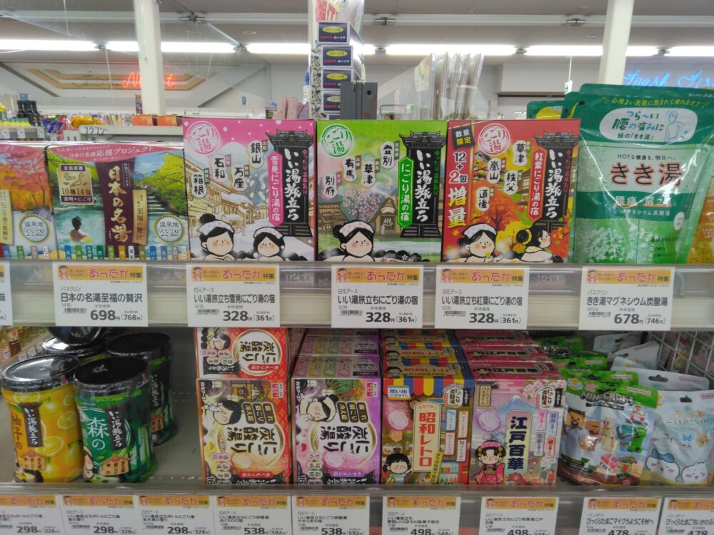 こんにちは、みしまや鹿島店です。 この頃気温も下がって夜も寒くなってきましたね。 季節の変わり目で体調を崩しやすくなる時なので、普段時間がなくシャワーだけという方も、ぜひお風呂にゆっくり浸かって体を温めてみてはどうでしょう。入浴剤もいろいろ取り揃えておりますので、お好きなものをお選びください(^^)/ ご来店お待ちしております。