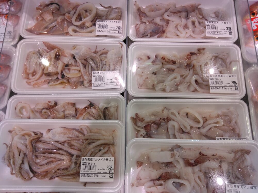 本日の楽山店おすすめ商品は、マイカとスルメイカの輪切りです! 柔らかい食感のマイカと歯ごたえのあるスルメイカを、フライや煮付けで是非食べ比べてみて下さい!