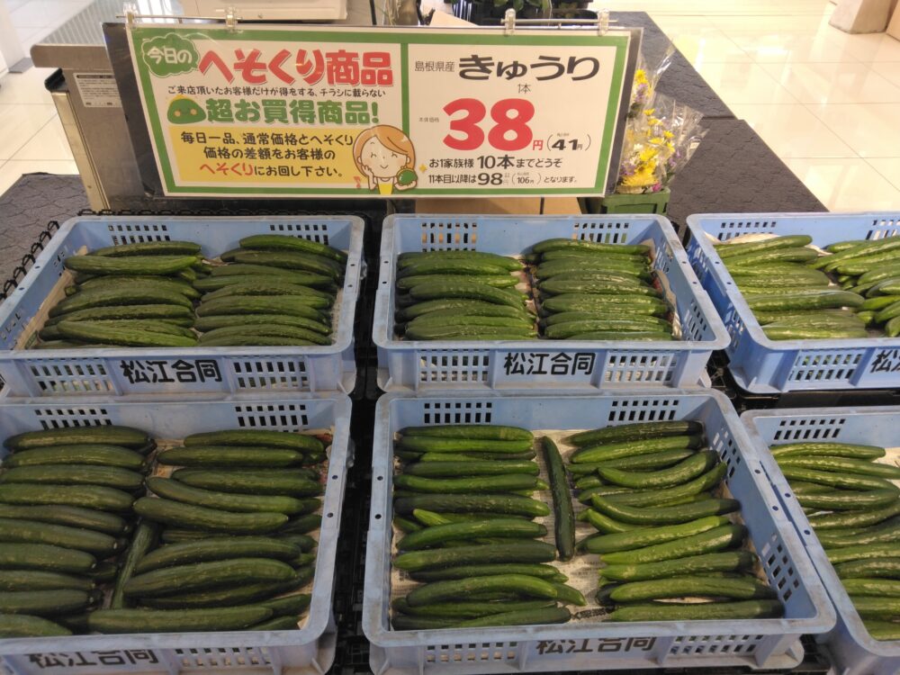 こんにちはみしまや雲南三刀屋店です。 本日のへそくりはきゅうりです。 朝晩めっきり涼しくなりましたが、日中は太陽が照ると暑いですね~。 あっさりサラダなんでいかがですか。 ぜひお買い求め下さいませ!