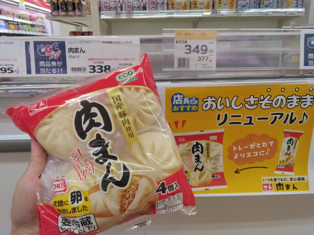こんにちは八束店です!肌寒くなってくると食べたくなるのが肉まんですよね!CGCフェアの対象商品でもありますので、是非この機会にお買い求めくださいませ。