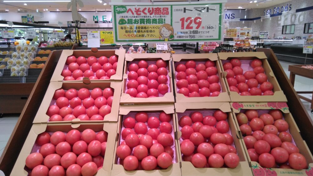 東川津店本日のへそくり商品はトマトです。サラダや煮込み料理にどうぞ!
