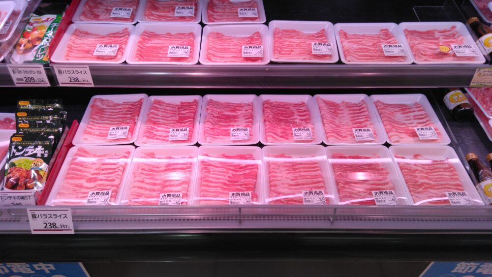 こんにちは!みしまや東川津店精肉コーナーからの本日のおすすめは、国産豚バラスライスです。炒め物や鍋など、いろいろ使えますよ♪ぜひ、ご利用くださいませ。