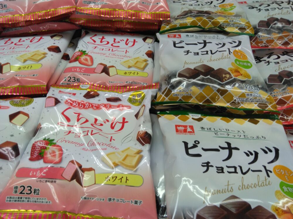 本日のおすすめ商品は、くちどけチョコレートです。二つの味が楽しめるアソートタイプになっております。ただ今CGCフェア開催中で、お買い得になっております。是非お買い求め下さいませ。