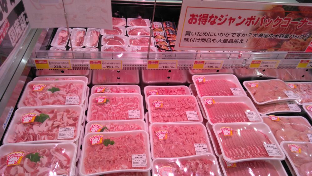 本日みしまや東川津店精肉コーナーからのおすすめは豚バラ、ロース、鶏もも、むね、手羽元と各種ジャンボパックが充実しております!是非冷蔵庫のストック、買い置きにご活用ください♪本日もみしまや東川津店へのお越しをお待ちしております!