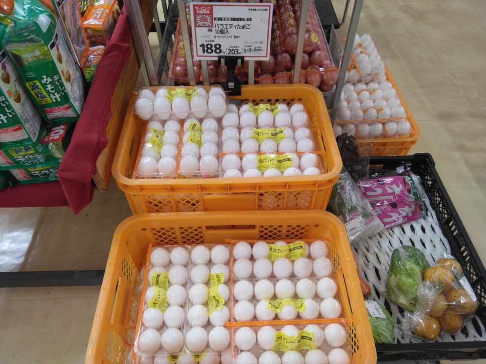 こんにちは八束店です!今日はセービングご利用で玉子がお買い得です!スープ、炒め物、お弁当作りに大活躍です。ぜひお買い求めくださいませ。