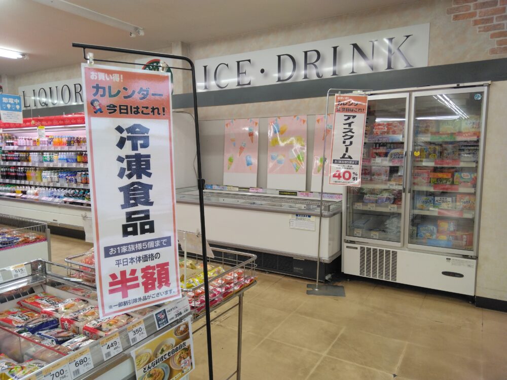 冷凍食品半額!アイス40%引き!お茶の割引セールも実施中!このお得な日をお見逃しなく!
