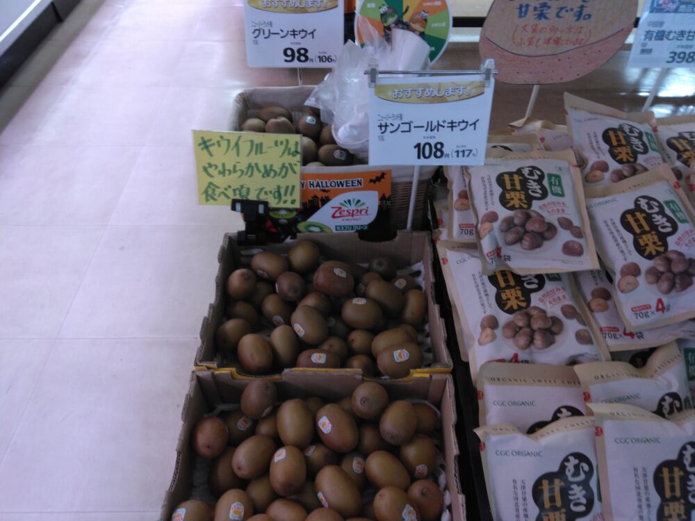 こんにちは八束店です。本日はキューイがお買い得です!キューイはやわらかめが美味しいです。食後のデザートにいかがでしょうか?