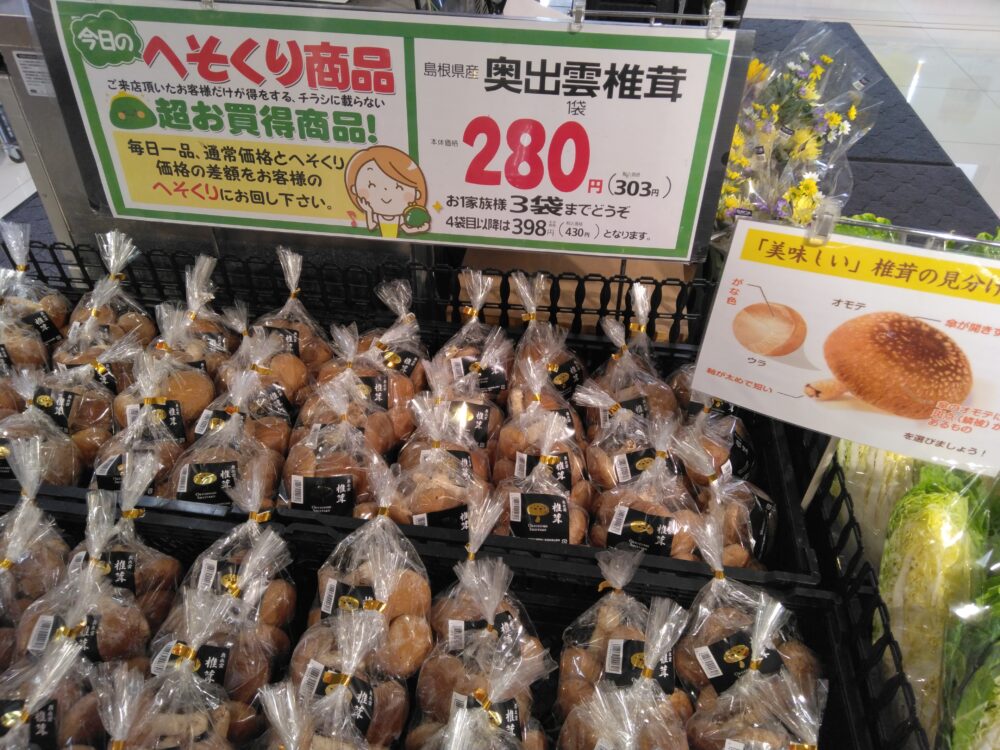 こんにちはみしまや雲南三刀屋店です。 めっきり寒くなりました。 体調は大丈夫でしょうか? 本日のへそくりは椎茸です。 あったかいお鍋にいかがでしょうか。 ぜひお早めにお買い求め下さいませ!