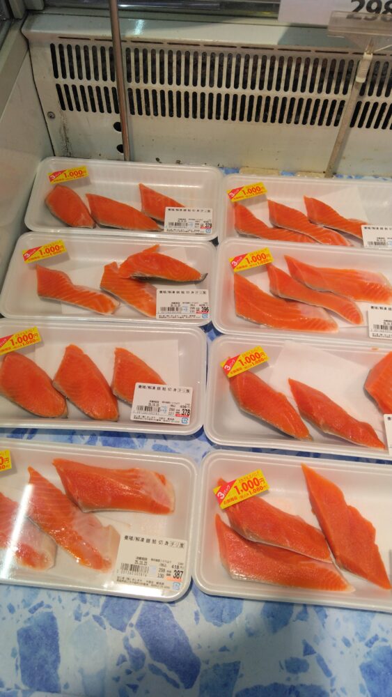 本日は毎回好評の火曜祭、水産コーナー3パック1000円を行っております。当店では今月のCGCおすすめ商品の銀鮭もよりどり3パック1000円にいたしております。どうぞお立ち寄りお買い求めくださいませ。