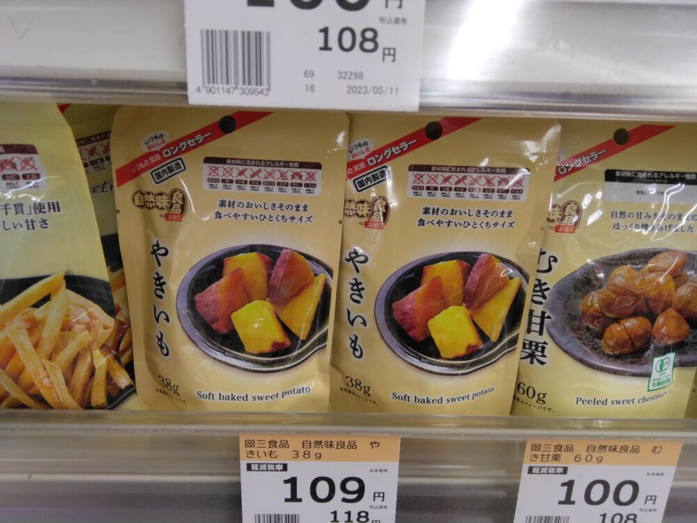 みしまや鹿島店です。本日のおすすめ商品は、やきいもです。素材のおいしさそのまま食べやすいひとくちサイズのやきいもです。お茶うけにいかがでしょうか。