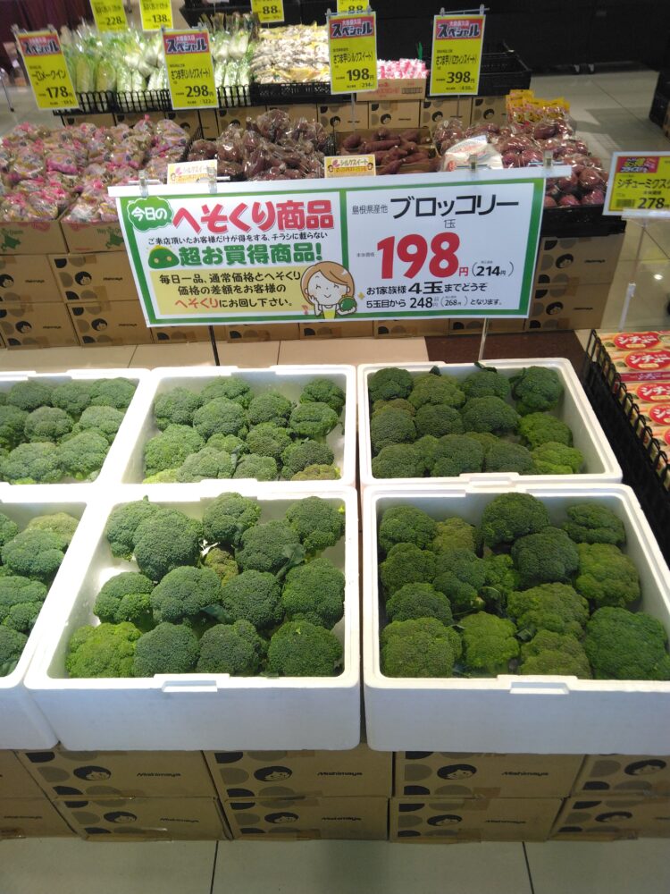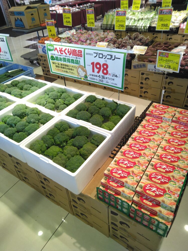 本日はブロッコリーがお買い得です。サラダや炒め物、スープやシチューでどうぞ。