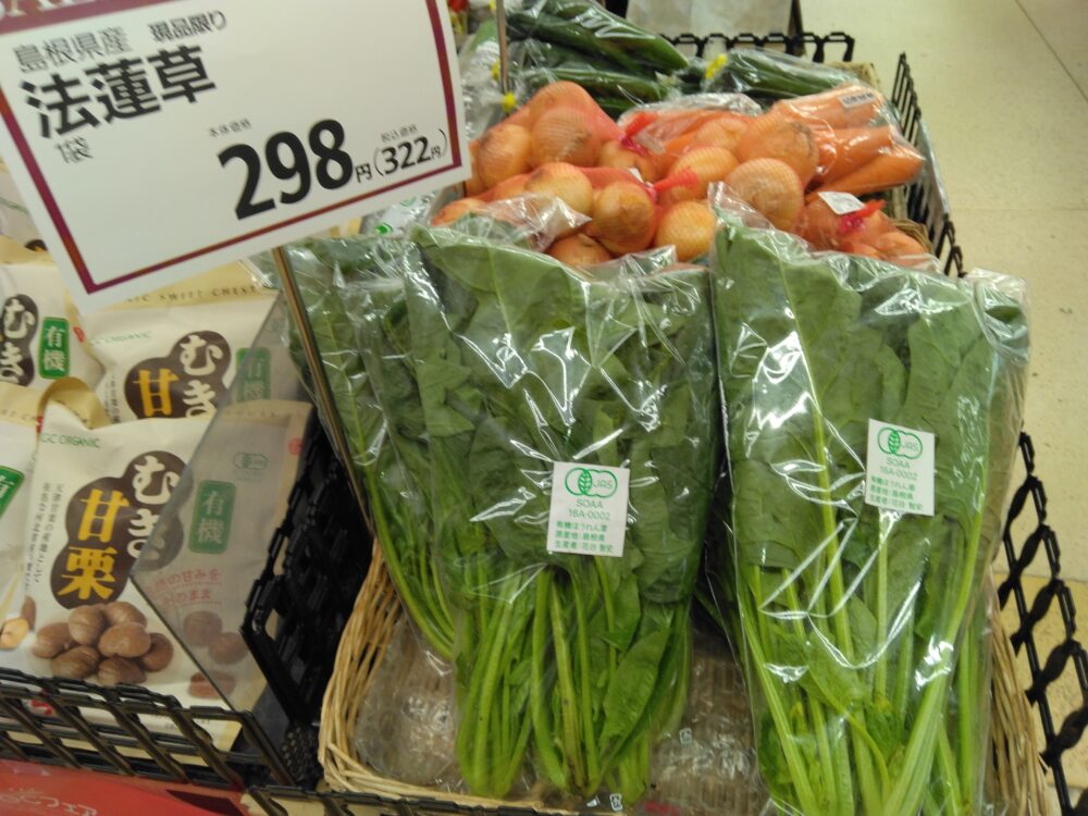 本日のおすすめは、ホーレン草です、おひたし、炒め物などにはいかがでしょうか、ぜひお買い求めくださいませ。