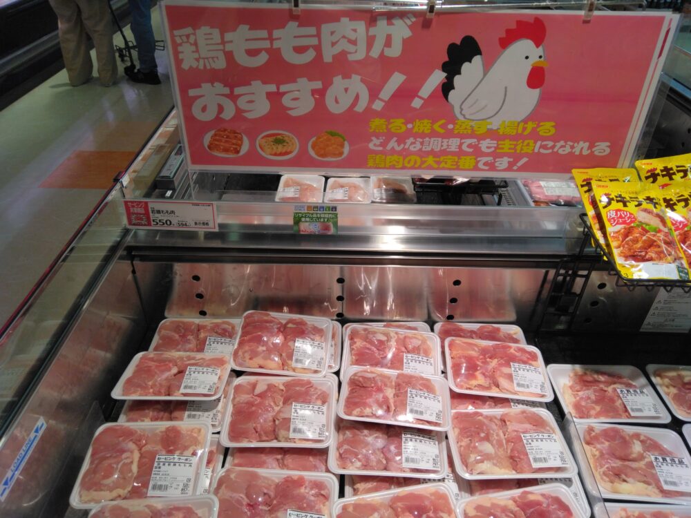上の木店、精肉コーナーからお買い得商品のご案内!本日はお肉びっくり市開催中です。お買い得商品が目白押しですよ!また、国産鶏モモ肉 2枚入りがセービング一冊で550円税込594円になりお得です!お鍋の具材として最適ですよね!是非この機会にお買い求めくださいませ。ご来店お待ちしております。