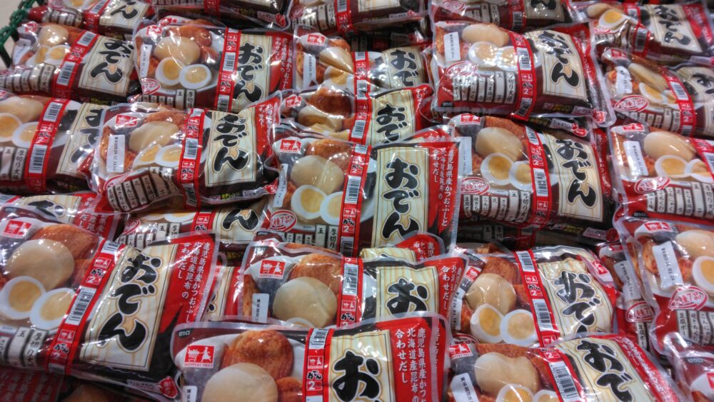 こんにちはみしまや学園店です。いつもありがとうございます! 寒くなってきましたね、そんな日はCGCのパックおでんはいかがでしょうか!? ““鹿児島産のかつお節”と“北海道産昆布の合わせだし”で、7品目の具材が入っています。寒い日のもう1品に!手軽に食べられるCGCおでんを是非お買い求めくださいませ。