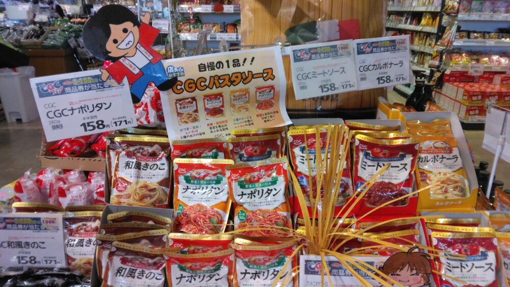 いよいよ今月のCGCフェアも終わりに近づいてきました。食品からのおすすめ商品CGCパスタソース各種は、パスタ以外にもピザソースの代用や、ハンバーグのきのこソースがけ、マッシュポテトにカルボナーラをミックスしチーズをのせてポテトグラタンにも早変わり!色々使える優れものです。CGCフェア、あと残りわずかです。是非お買い求め下さいませ。