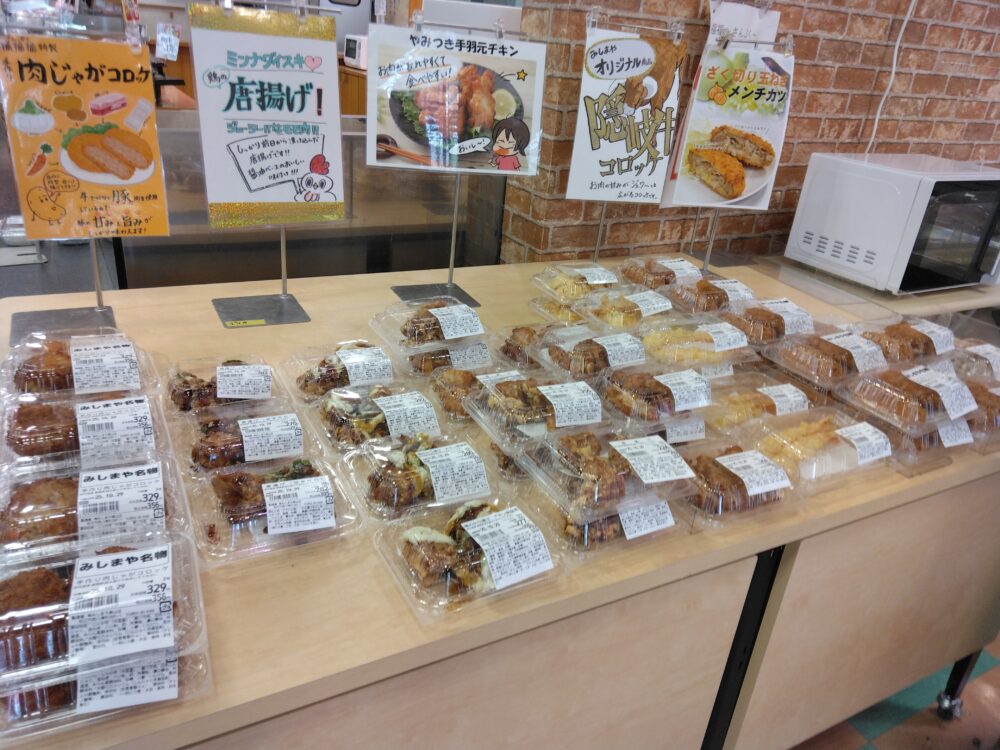 こんにちは。 みしまや楽山店です。 本日はCGC商品からお弁当やお惣菜、オススメ商品の手作り肉じゃがコロッケを並べております。 皆様のお昼ご飯や夜ご飯のお供に是非!! 今月の頭から販売を始めましたぼんじりもオススメです!