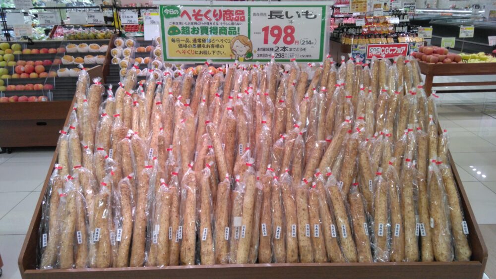 東川津店本日のへそくり商品は長いもです。とろろや短冊、ステーキにしてもおいしい!