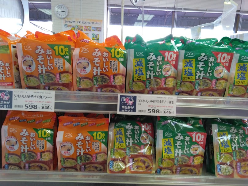 こんにちは、中央店です。フリーズドライみそ汁いかがですか?お弁当などにプラス1品でみそ汁いかがですか?是非、お立ち寄りお買い求めくださいませ!