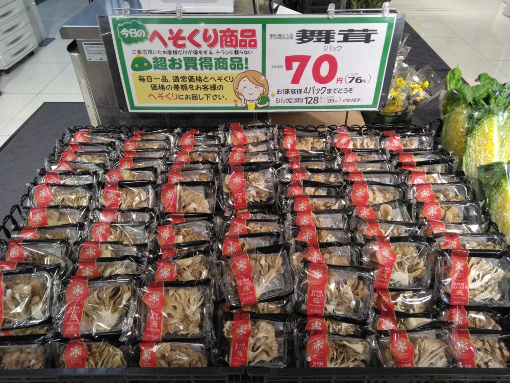 こんにちはみしまや雲南三刀屋店です! 本日のへそくりは舞茸です。 キノコを美味しく食べられる季節になりました。 ぜひお買い求め下さいませ!