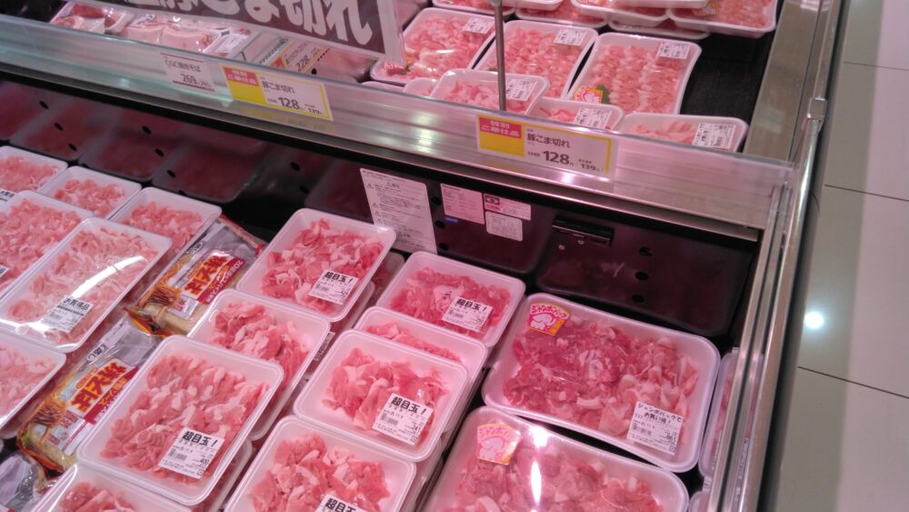 本日みしまや東川津店精肉コーナーからのおすすめは国産豚こま切れが100g128円(税込価格139円)と、数量限定でお買い得となっております!是非お早めにお買い求めください!本日もみしまや東川津店へのお越しをお待ちしております♪