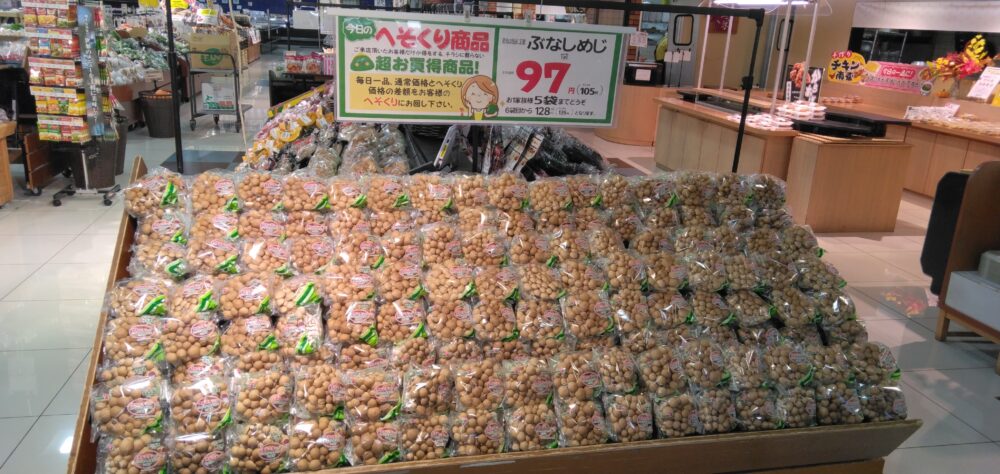 こんにちは、田和山店農産部門です。本日のおすすめはぶなしめじです!菌活におすすめいたします!ぜひお買い求めくださいませ。