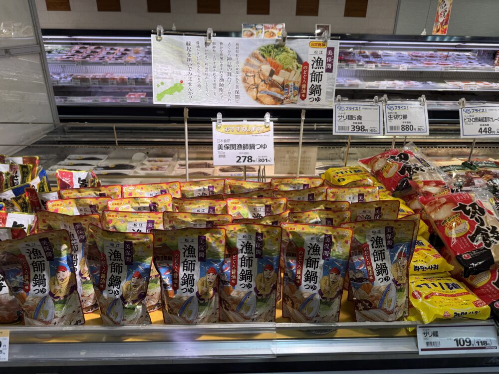 こんにちは、中央店です。日本食研漁師鍋つゆ今月お買い得です!醤油がきいた魚介鍋つゆです。是非、お立ち寄りお買い求めくださいませ!「