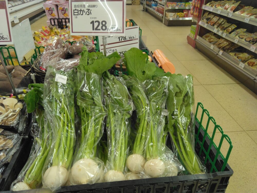 本日のおすすめは、松江市産の白かぶです。煮物、漬け物、酢の物などにはいかがでしょうか、ぜひお買い求めくださいませ。
