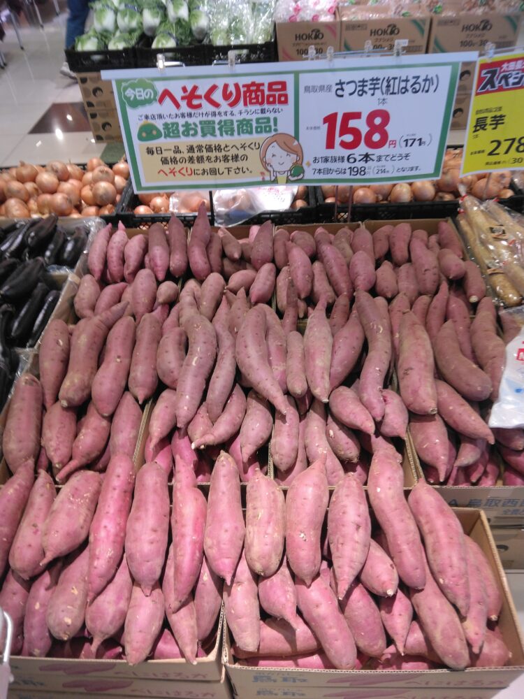 本日はさつま芋がお買い得です。煮物、揚げ物、炒め物、焼き芋、大学芋などなど、さつま芋の甘さを活かした料理でお楽しみ下さい。