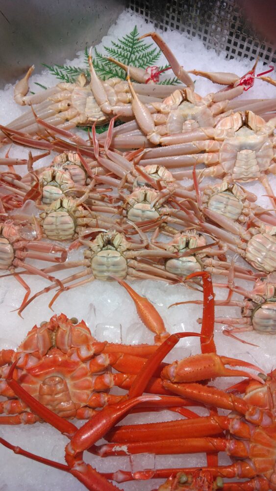 山陰のこれからの味覚と言えば松葉がに。当店水産コーナーでは松葉がにをご用意いたしております。どうぞお立ち寄りお買い求めくださいませ。