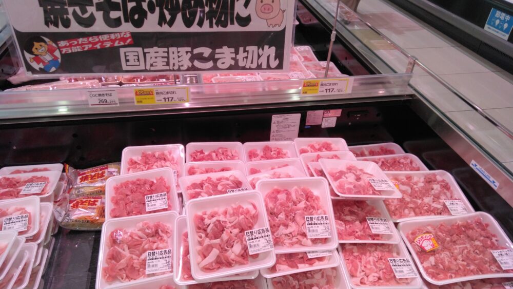 本日みしまや東川津店精肉コーナーからのおすすめは、国産豚こま切れ肉が100g117円(税込価格127円)と、お買い得となっております!是非本日もみしまや東川津店へのお越しをお待ちしております♪