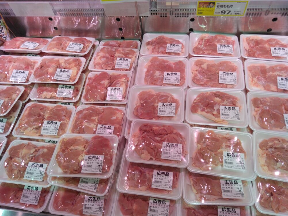 本日の精肉コーナーからのおすすめ品は国産鶏もも肉 100g 97円とお買得です。 是非この機会にお買い求めくださいませ。