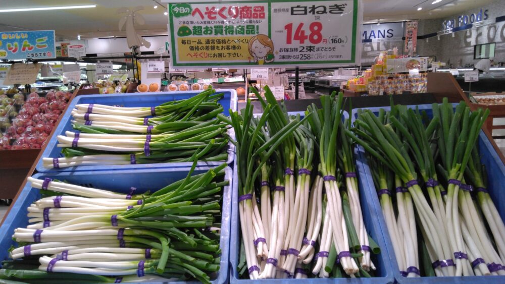 東川津店本日のへそくり商品は白ねぎです。寒くなってきたのでお鍋にどうぞ!