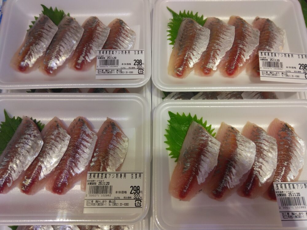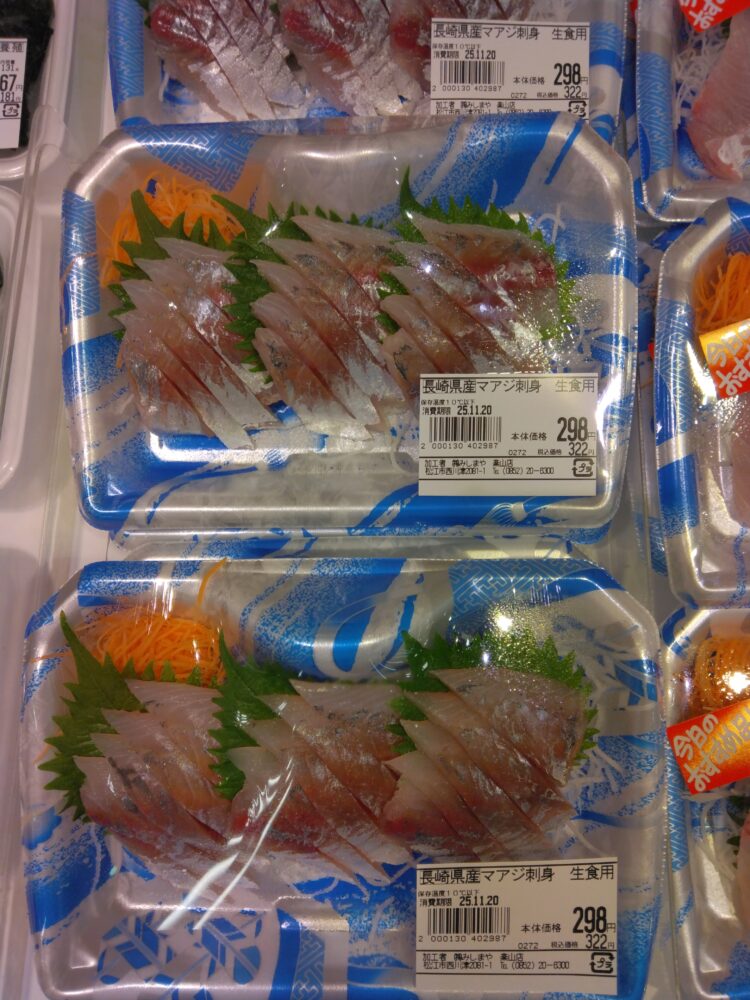 本日の楽山店おすすめ商品は、鮮魚コーナーのマアジ各種です!! お刺身、柵、その他にもお買い得パックもご用意しております! 是非お買い求め下さいませ!!