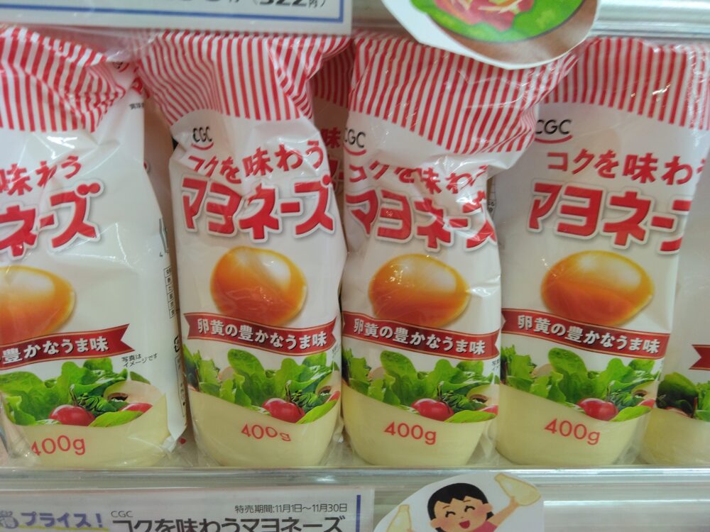 こんにちはみしまや上の木店です。 本日のおすすめ商品は、CGCコクを味わうマヨネーズです。 卵黄のみを使用したコクとうま味、炒め物の油の代わりにコクがでておすすめですよ。 是非この機会にお買い求めくださいませ。