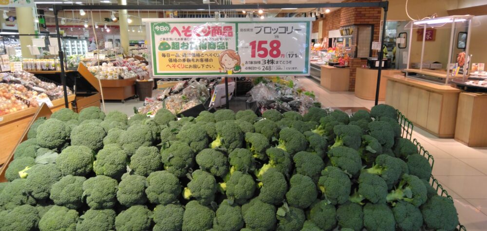 こんにちは、みしまや田和山店農産部門です。本日のおすすめは【ブロッコリー】です。冬の時期から旬になるブロッコリーはいかがでしょうか。マヨネーズにつけるだけでも美味しくいただけます。ぜひお買い求めくださいませ。