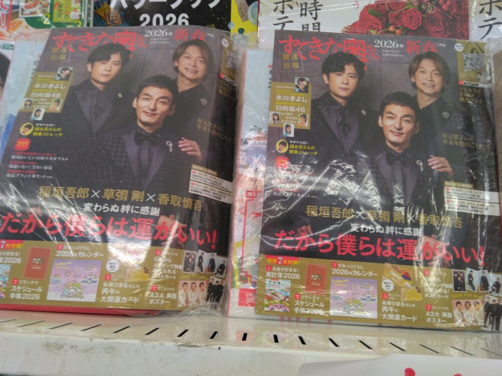 只今すてきな奥さん新春号を発売しております。家計簿、カレンダー、スケジュール手帳などいろいろ付録が入っています。是非お買い求め下さいませ。お待ちしております。