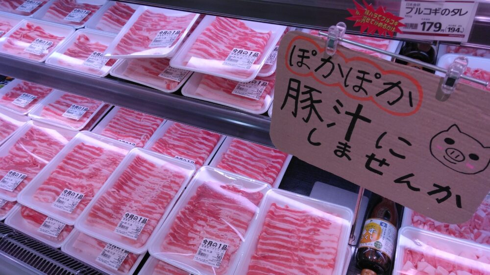 本日みしまや東川津店精肉コーナーからのおすすめは、国産豚バラスライスが100g238円(税込価格257円)と、お買い得となっております!是非鍋物、炒め物にゴカツヨ!本日もみしまや東川津店へのお越しをお待ちしております♪