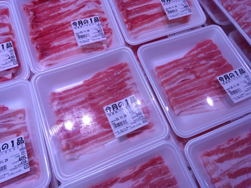 春日店です。本日のおすすめ品は国産豚バラ肉スライスです。寒い日はやっぱりお鍋!キムチ鍋、ミルフィーユ鍋におすすめです!