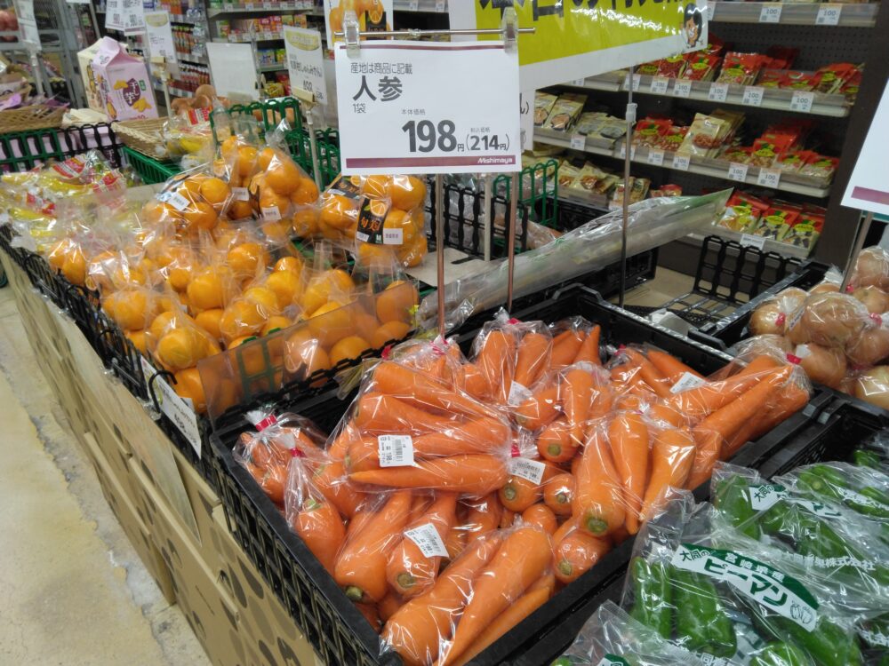 本日は、人参がお買い得です。炒め物、煮物にいかがでしょうか。ぜひお買い求めくださいませ。
