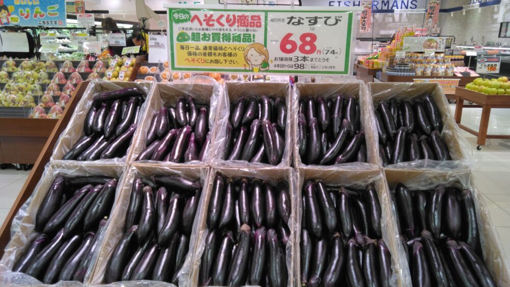 東川津店、本日のへそくりはなすびです! なすの煮びたしがおすすめ♪ この機会に是非お買い求めくださいませ!