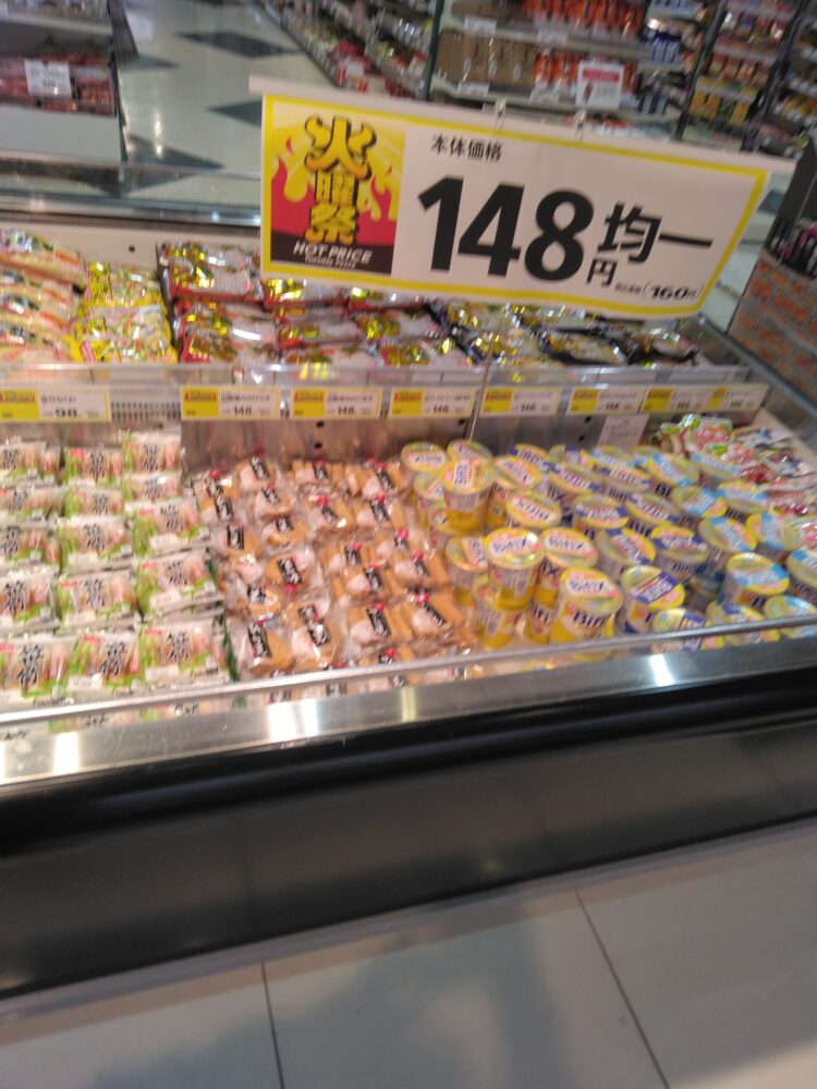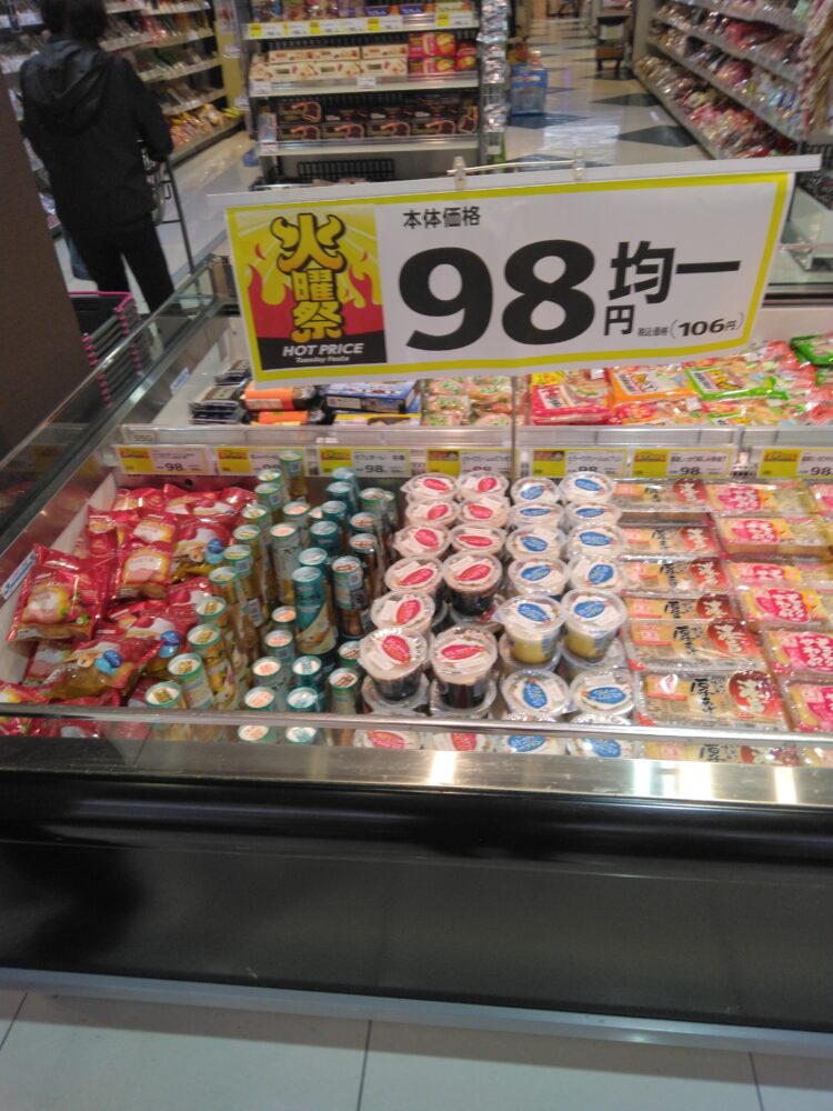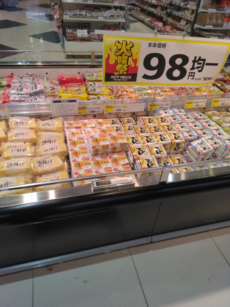 こんにちは、春日店日配です。今日は毎週大好評の火曜祭です。98円、148円均一でたくさんの商品を揃えております!是非この機会にお買い求めくださいませ。