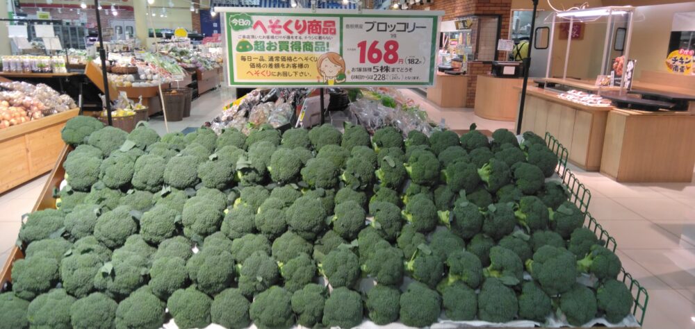 こんにちは、みしまや田和山店農産部門です。本日のおすすめは【ブロッコリー】です。地物のブロッコリーはいかがでしょうか。サラダやマヨネーズをつけるのがおすすめです。ぜひお買い求めくださいませ。