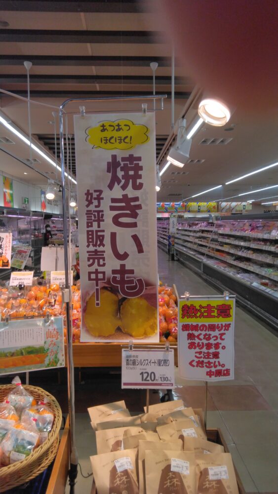 雪が降ってきました。こんな寒い日にはあつあつほくほくの焼きいもはいかがでしょうか。当店ではあつあつほくほくの焼きいもを販売いたしております。どうぞお立ち寄りお買い求めくださいませ。