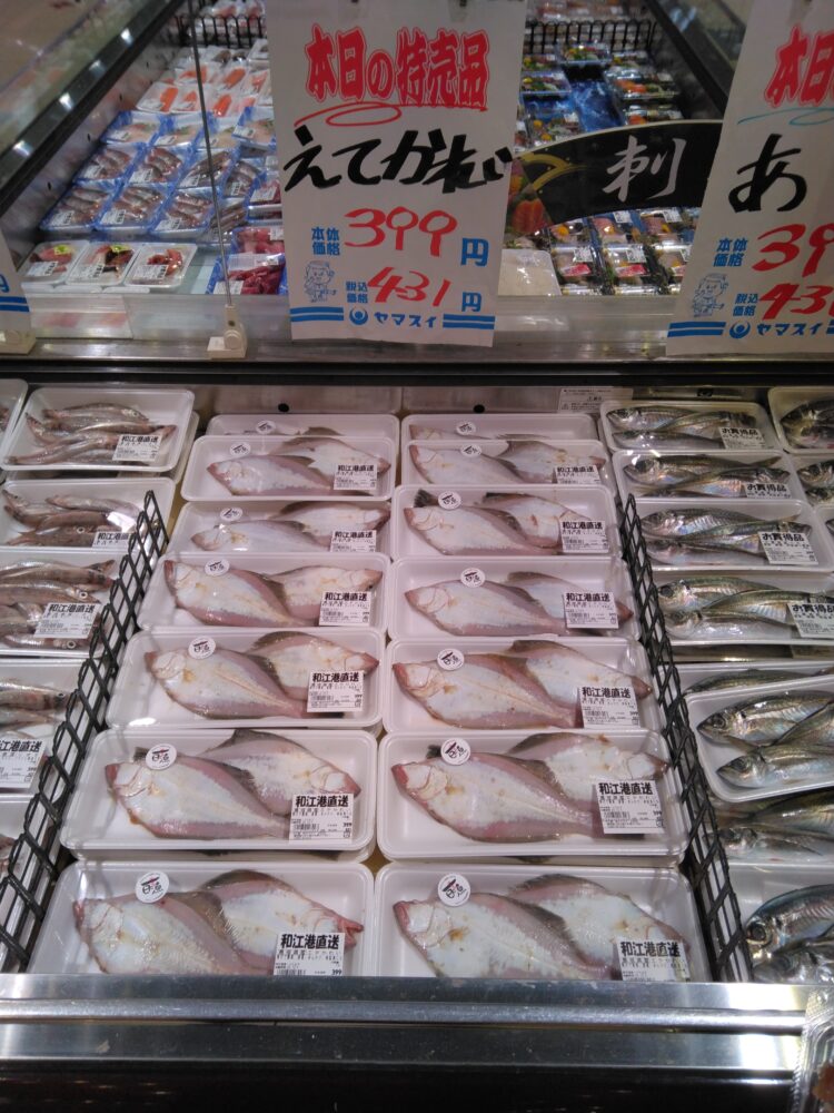 本日はエテカレイがお買い得です。煮付け、唐揚げ、あんかけ、南蛮漬けなどにもどうぞ。