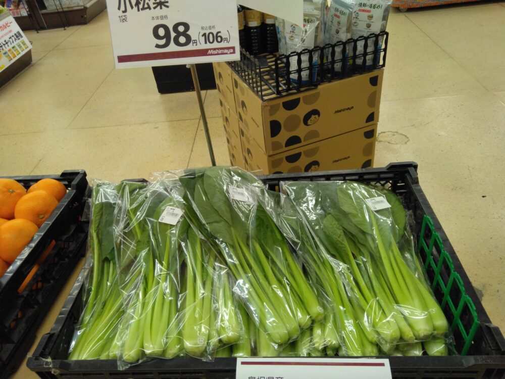 本日のおすすめは、島根県産の小松菜です。炒め物、ごまあえ物、汁の実などにはいかがでしょうか、ぜひお買い求めくださいませ。