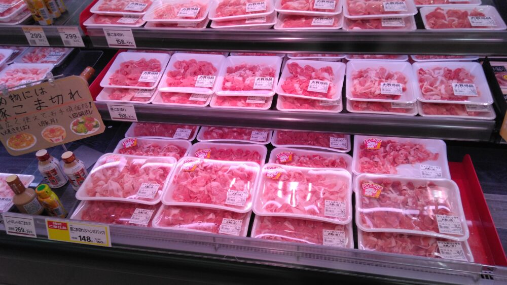 こんにちは!みしまや東川津店精肉コーナーからの本日のおすすめは、国産豚こま切れです!炒め物と相性抜群ですよ。焼きそばや野菜炒めにどうぞ♪ぜひ、ご利用くださいませ!