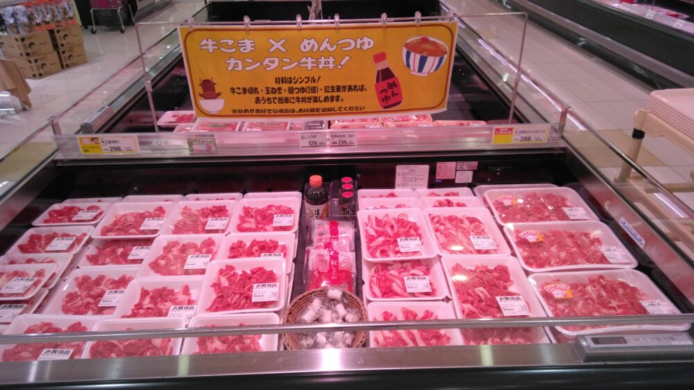 本日のみしまや東川津店精肉コーナーからのおすすめは、国産牛こま切れです。 炒め物、鍋料理、牛丼などにいかがでしょうか? ぜひお買い求めくださいませ!